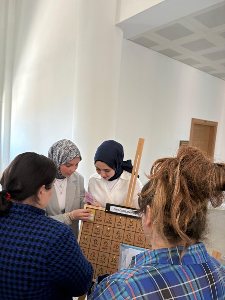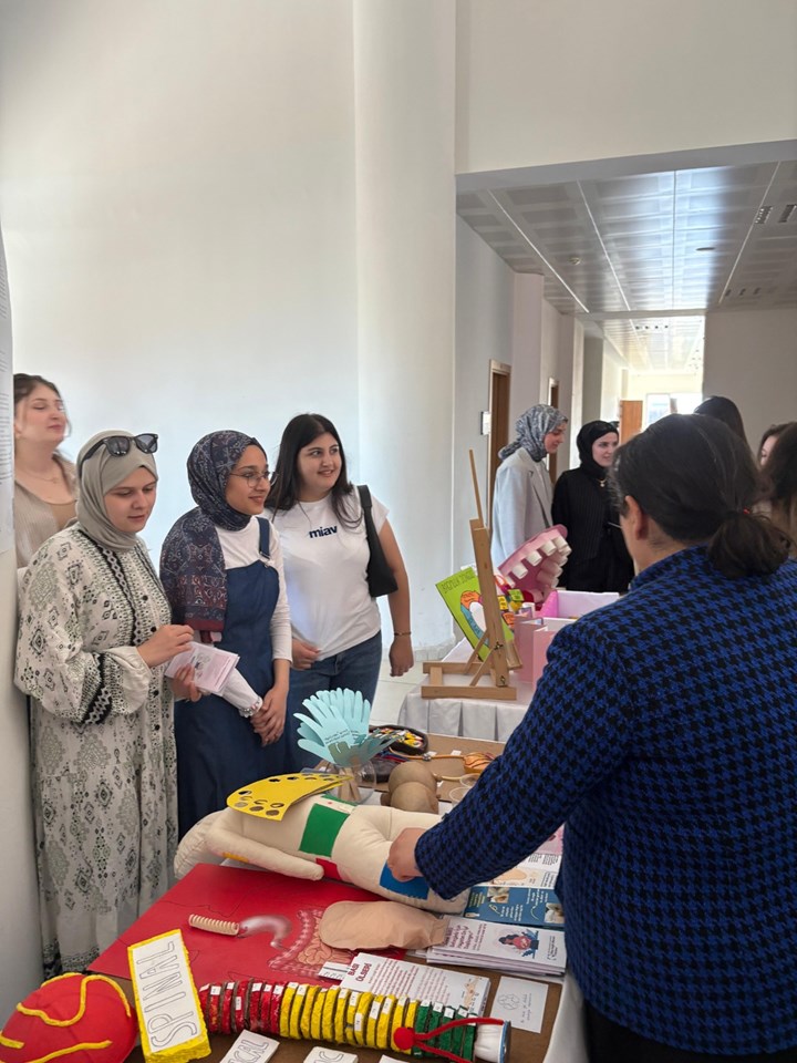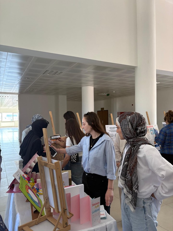 As part of the Nursing Education Course taught by Department of Nursing Teaching Staff Lecturer Özlem SEYMEN, by third-year nursing students opened “Teaching Course in Nursing Exhibition of Educational Materials”. At the exhibition, which featured original and creative educational materials prepared by students during their studies, participants eagerly examined various visual, audio, and interactive tools designed to support nursing education. This event, which encouraged active student participation in the educational process, contributed to the development of teaching skills and allowed students to showcase their professional creativity.